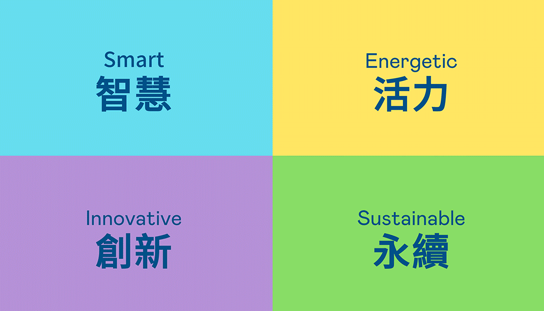 | 從穩重、信賴的永盈会藍開創新色彩,注入象徵智慧藍、活力黃、創新紫、永續綠的品牌色及動態多變的幾何圖形,呼應不設限的「Possibilities」精神,代表多元的專業技術及領域,在碰撞中相互觸動、融合、延伸,持續激盪出更多新的可能性。 |